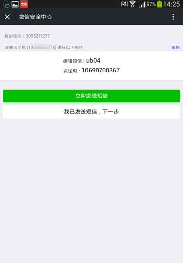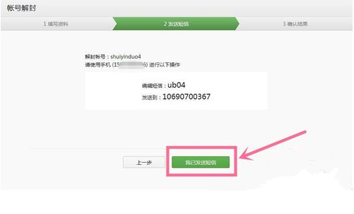 3. 按要求编辑短信,发送到指定的106XXXXXX,最后点击“我已发送短信”